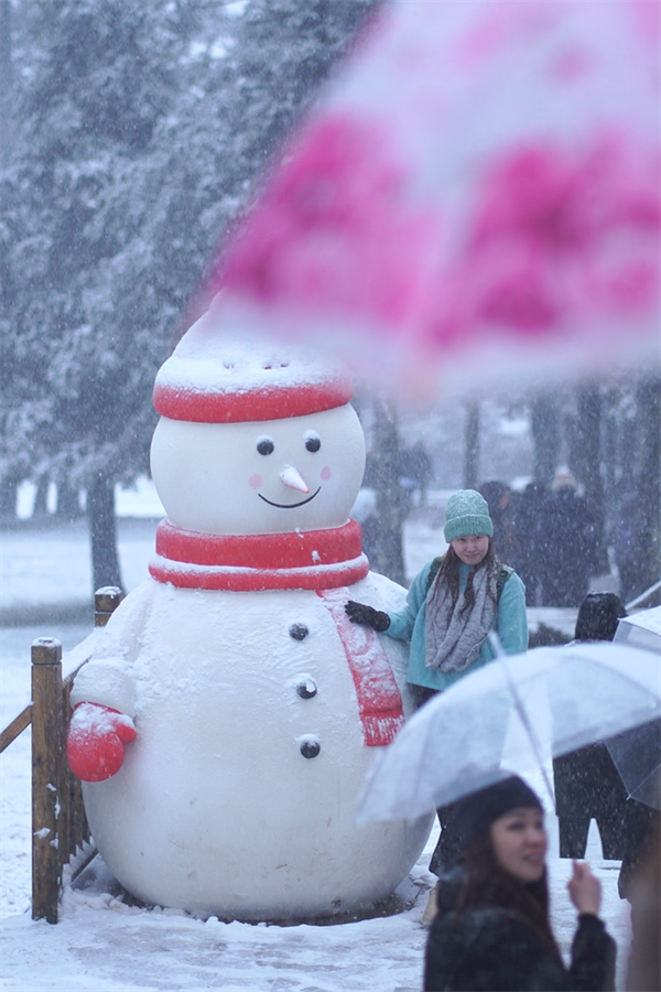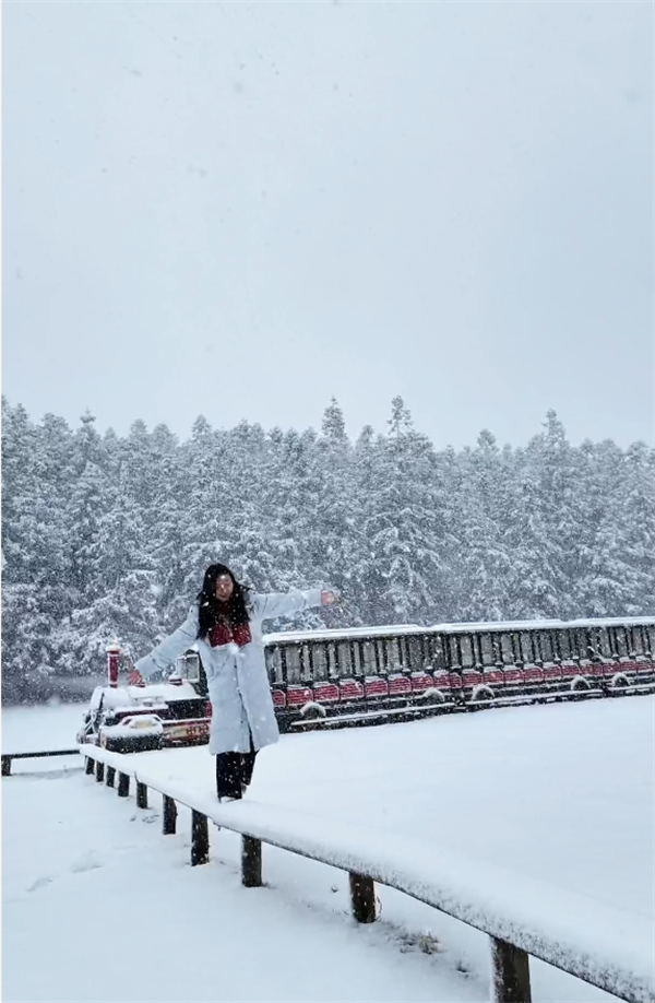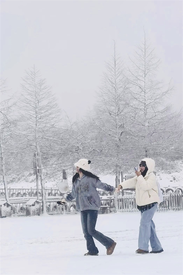 此刻的仙女山,已是一片白茫茫的世界。雪地里早已熱鬧起來。游客們沉浸在這片純白世界中,或嬉戲打鬧,堆雪人、打雪仗;或悠然漫步,用腳印記錄這份驚喜。