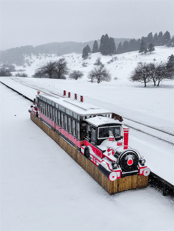 乘坐歐式小火車穿梭林海,途經(jīng)波浪起伏的最美公路,仿佛置身童話世界,火車轟鳴聲與雪花飄落聲交織成美妙冬日交響曲。