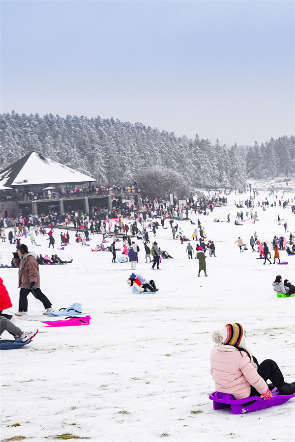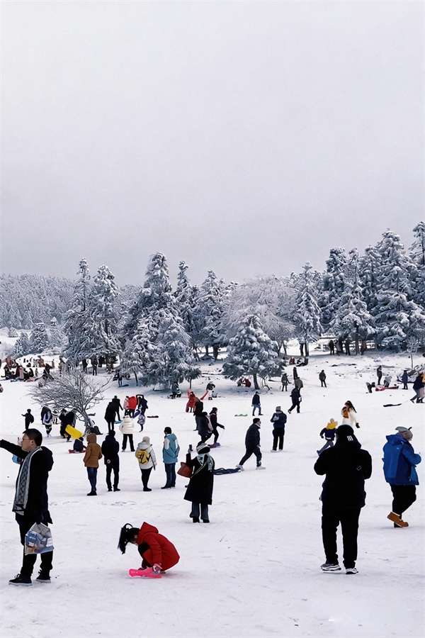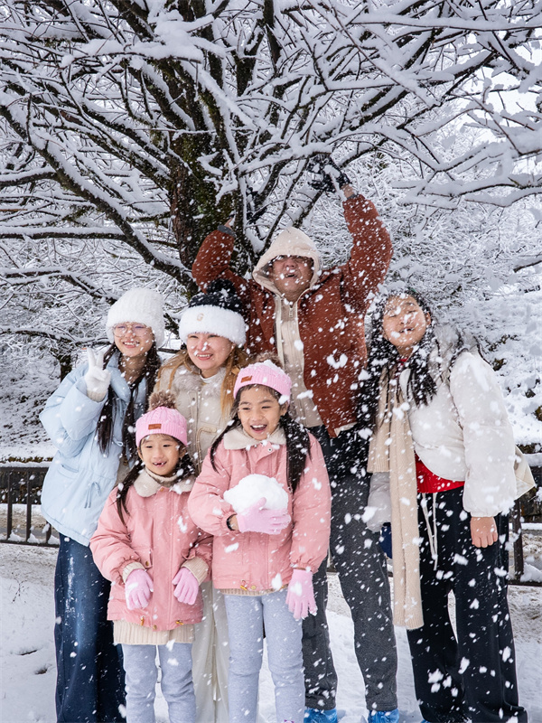 賞雪、玩雪的游客絡(luò)繹不絕,拍照打卡的歡聲笑語與孩子們?cè)谘┑乩锏逆覒蚵暯豢椩谝黄穑瑓R成節(jié)日最美的樂章。