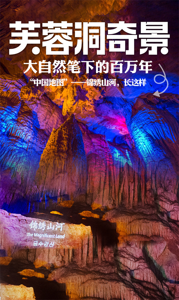 你能想象大自然也擁有神奇的畫(huà)筆,一揮而就,繪制出一幅跨越百萬(wàn)年的壯麗畫(huà)卷嗎?今天,就帶你走進(jìn)被譽(yù)為“地下藝術(shù)宮殿”的芙蓉洞,探尋那藏在地下深處的“中國(guó)地圖”——錦繡山河。
