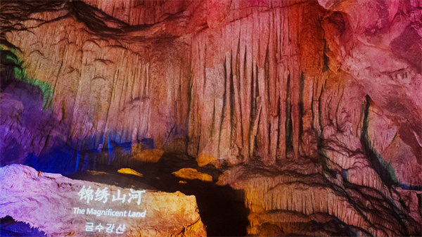 踏入芙蓉洞,眼前巨大的石壁便吸引了所有人的目光。仔細(xì)端詳,你會(huì)發(fā)現(xiàn)其中的奧秘。這里的一切并非人力雕刻而成,而是水與石頭歷經(jīng)億萬(wàn)年對(duì)話的杰作。溶解、沉淀、堆積……大自然以其最慢卻最具力量的筆觸,在這里勾勒出一幅名為“錦繡山河”的畫(huà)卷。