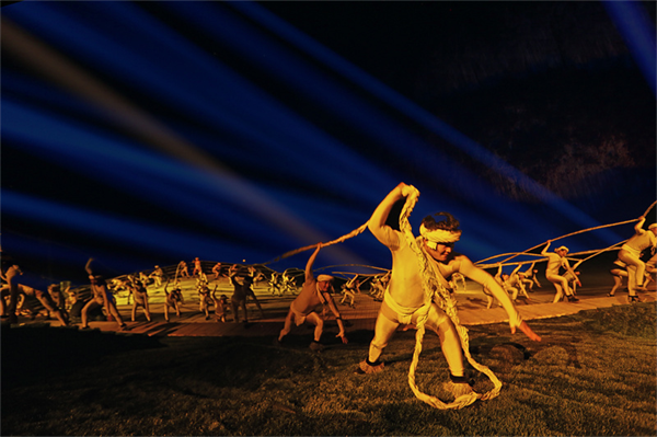 《印象武隆》實景演出是以非物質(zhì)文化遺產(chǎn)“川江號子”為主線,將千里烏江上的纖夫文化以及“號子”“哭嫁”等傳承千年的民俗形式以及“棒棒”“滑竿”“麻辣火鍋”等最具重慶特色的人文元素相融合,以真山、真水為舞臺背景,通過實景歌會以及現(xiàn)場3D激光和各種燈光配合,完全展現(xiàn)了中國歷史文化的博大,中國人民不屈不撓的精神和尊老愛幼的傳統(tǒng)美德。