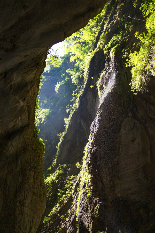 在龍水峽地縫仰望一線天,人生窄處,反而見光。