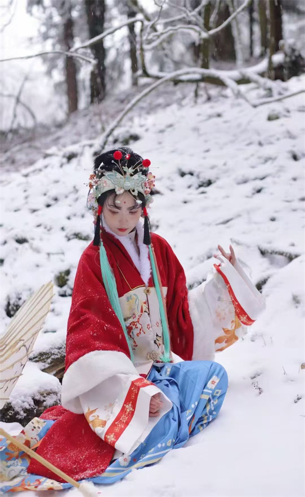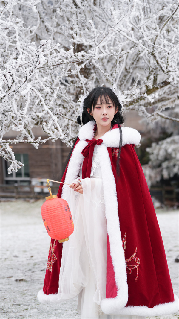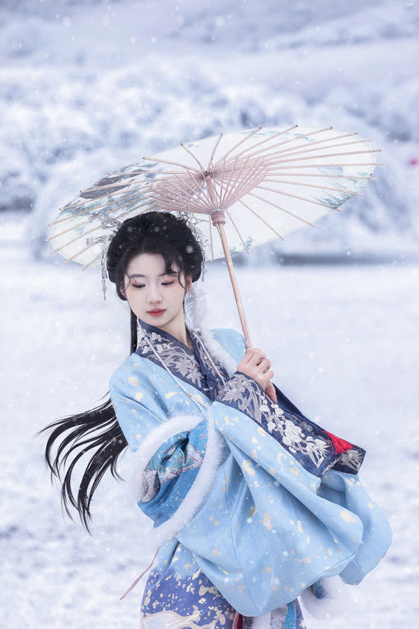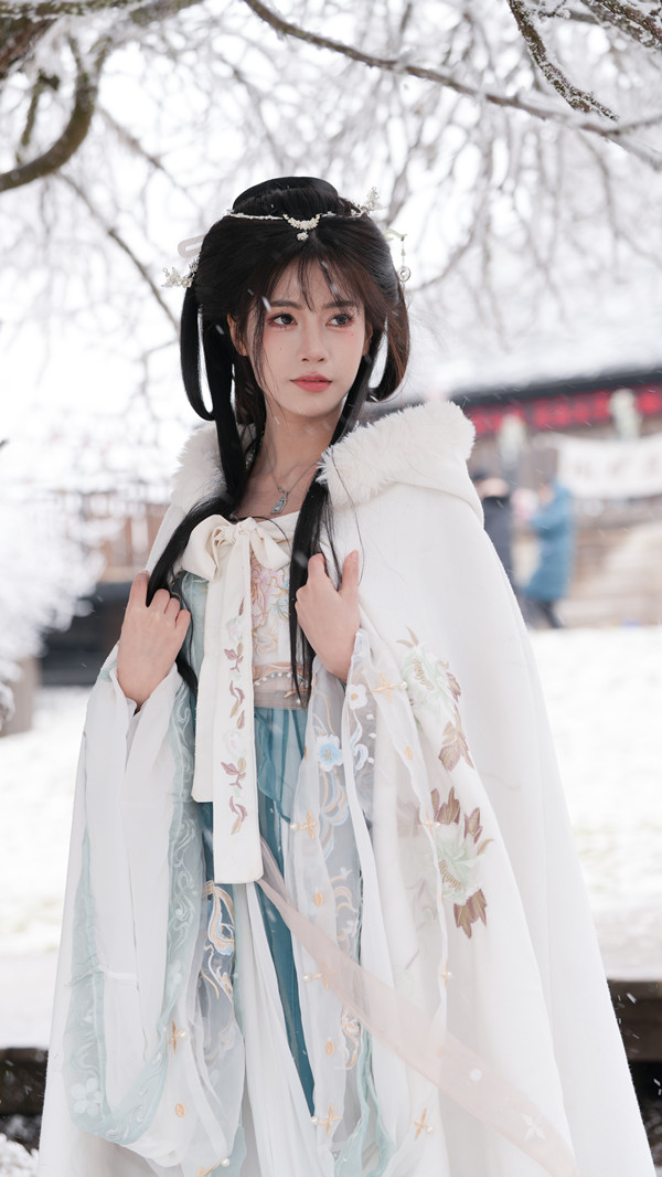 提前挑選一套心儀的古裝至關(guān)重要,可以是飄逸的漢服,也可以是英姿颯爽的唐裝。顏色以素白、淡藍(lán)、淺粉、紅色為佳??钍缴希L(fēng)、襦裙、廣袖長袍皆可,搭毛領(lǐng)、絨帽、油紙傘更添溫暖與韻味。