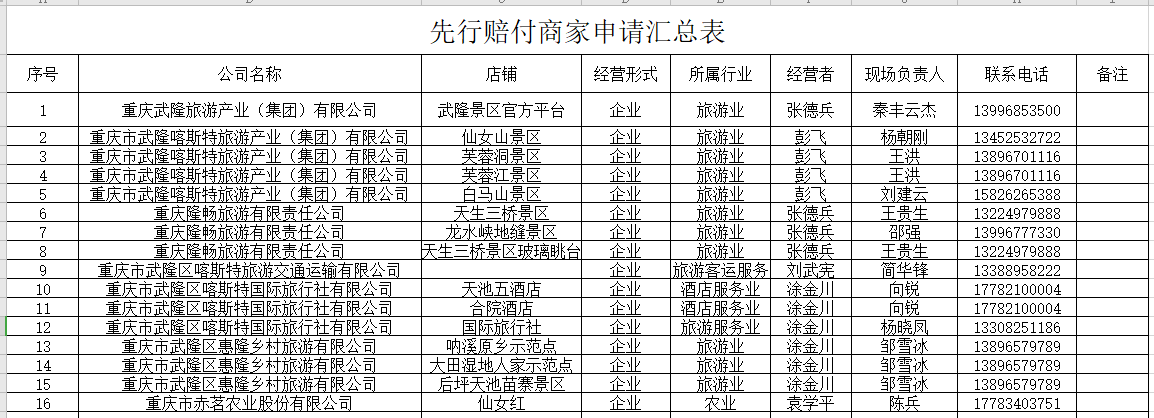文章來源: 武隆旅游網(wǎng) 作者:匿名 2024-07-22 16:10:42摘要: 先行賠付商家的匯總表如下:【免責聲明】:本平臺發(fā)布及轉(zhuǎn)載文章僅作同行交流學習,部分數(shù)據(jù)來源于網(wǎng)絡(luò),未經(jīng)證實,并非商業(yè)用途,也并非針對具體單位和個人,請勿對號入座,部分內(nèi)容及圖片來源于網(wǎng)絡(luò),版權(quán)歸原作者所有,若未能找到作者和原始出處還望諒解。如有版權(quán)疑問,或者文章內(nèi)容出現(xiàn)侵權(quán)行為,請聯(lián)系本官網(wǎng)后臺,我們會第一時間及時進行刪除處理,謝謝。Tags(關(guān)鍵字): 本文暫無Tags!